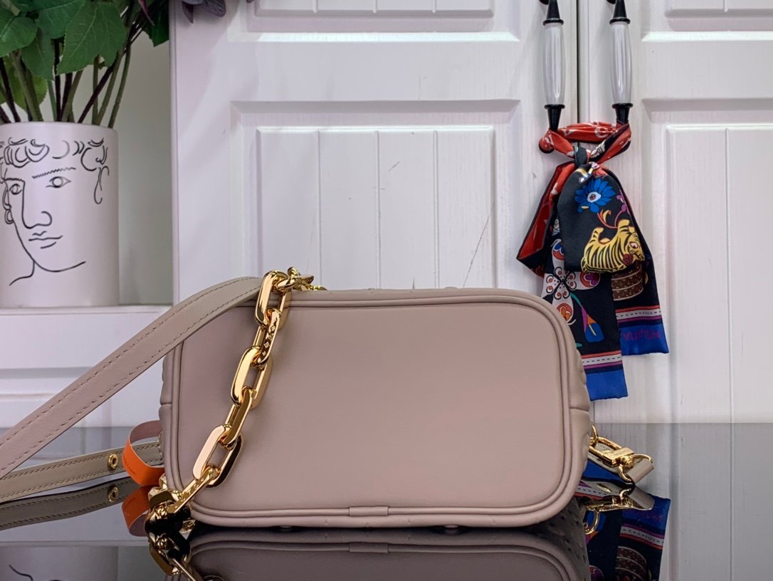 M26530 Coussin Bucket Handbag chic Beige colorway made from Monogram-embossed lambskin.