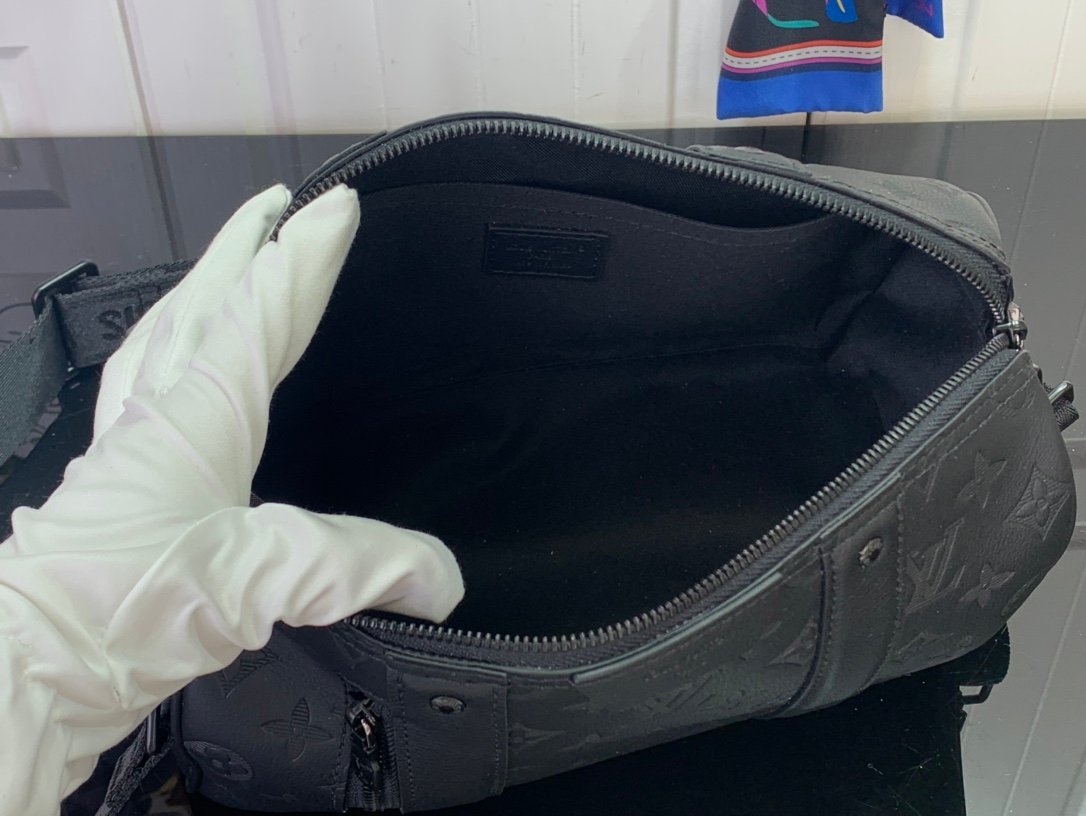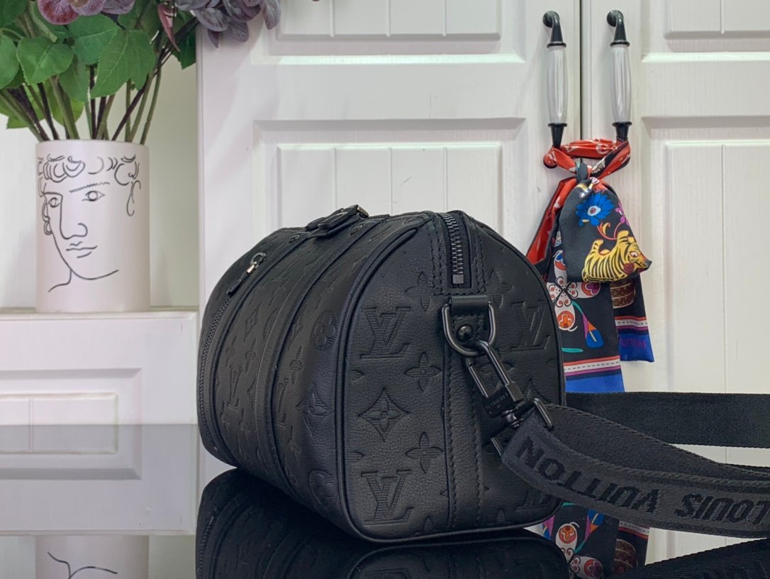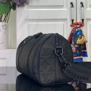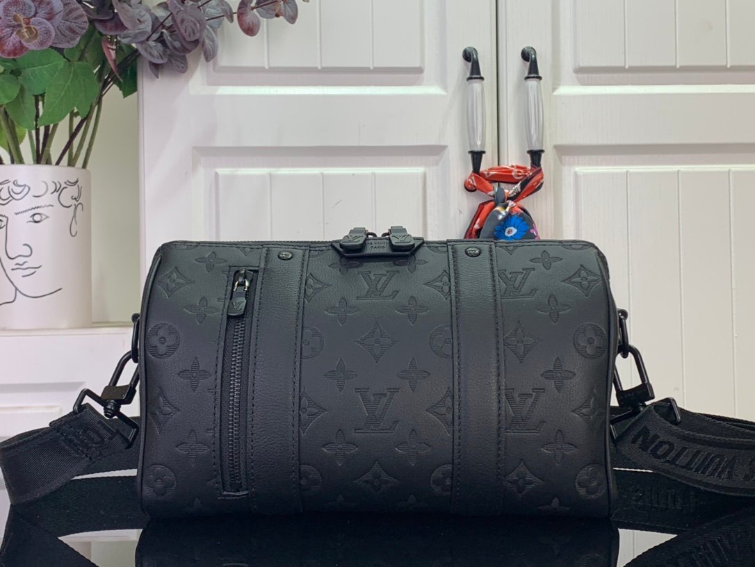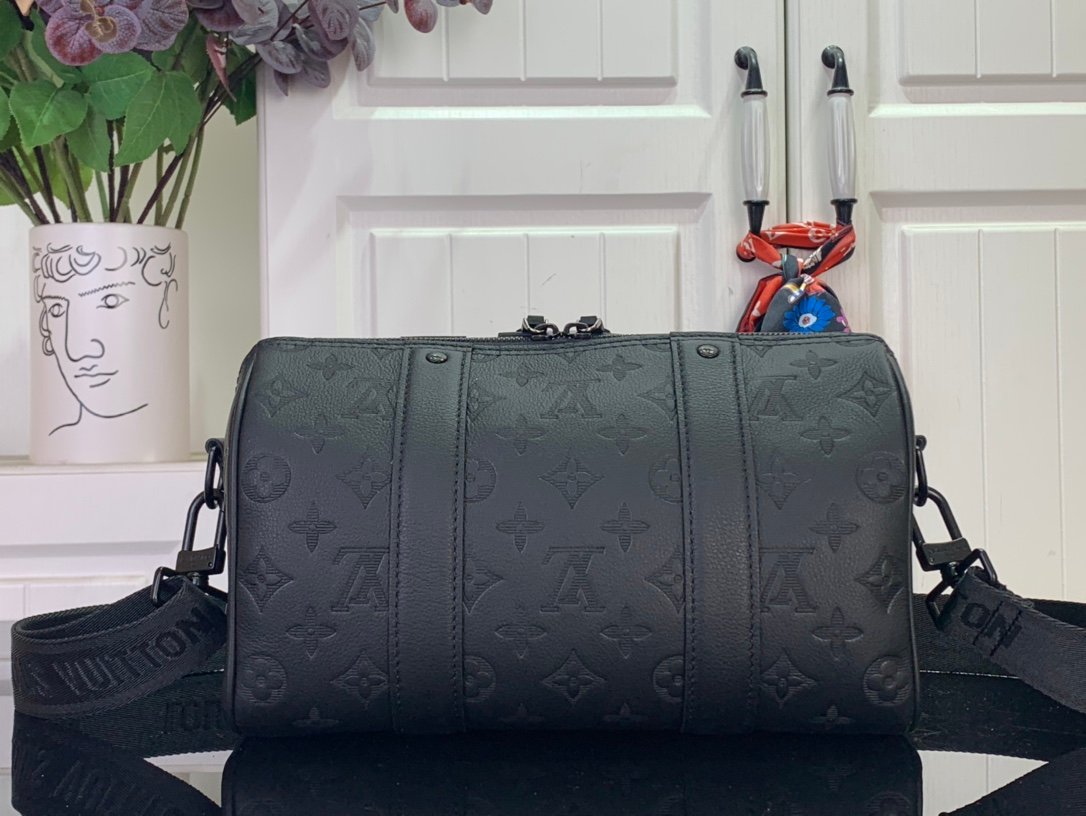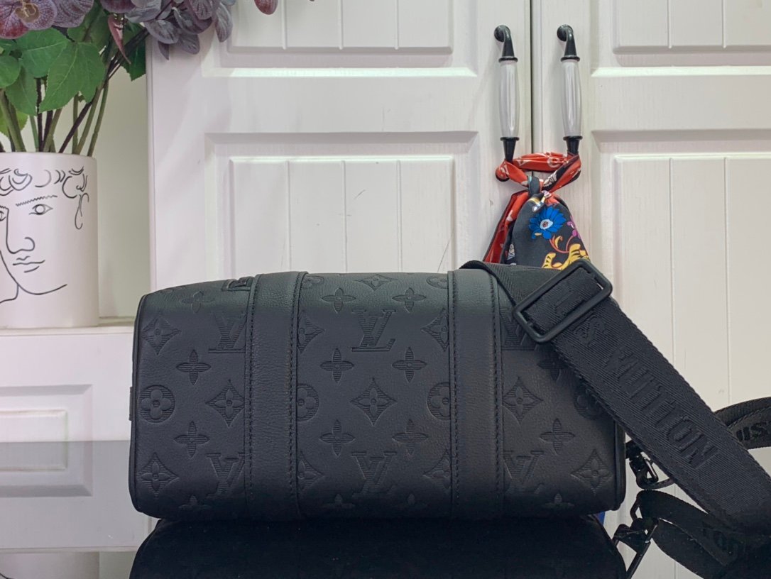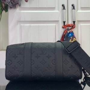 M26750 City Keepall handbag, Monogram Shadow calf leather with a removable, adjustable strap.