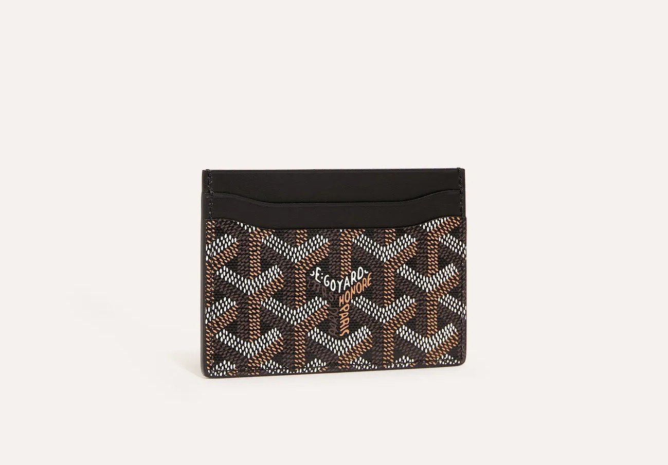 Zipper card holder made of beige and black Oblique printed fabrics and cowhide, 4 card slots.
